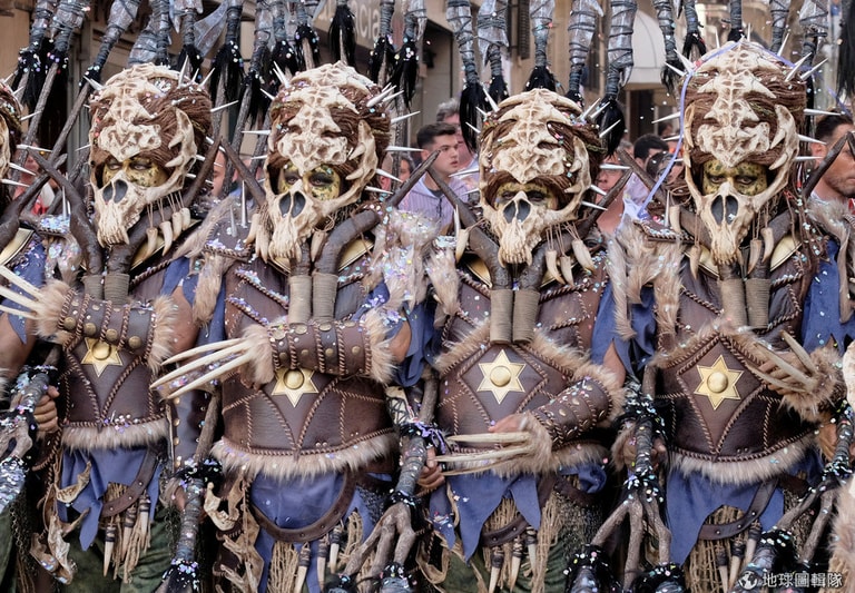 在瓦倫西亞地區,參加狂歡節的民眾穿上訂做的服飾,紀念 13世紀時西班牙基督教人士戰勝南部穆斯林摩爾人(Moors)政權的收復失地運動(Reconquista)。
