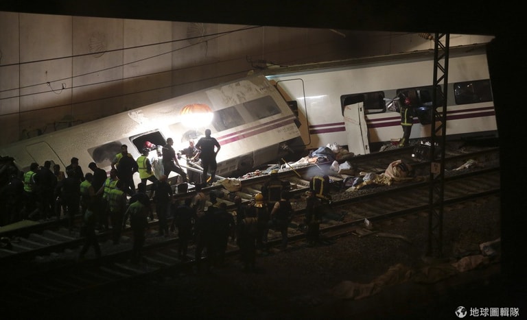 西班牙的加列西亞省(Galicia)發生嚴重的列車翻覆意外,一輛原定從馬德里開往造船城市費羅爾(Ferrol)的列車,在途中意外出軌,拉有13節車廂的列車就這麼堆疊翻覆在鐵道旁,現場一片混亂。目前已知至少有45人不幸喪生,分析師表示這是當地40年來最嚴重的列車意外。
