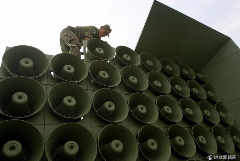 自從韓戰以後,南北韓就持續以擴音器朝邊境另一端進行政令宣傳,希望可以在邊境另一端的人民——通常是士兵——心中埋下懷疑當權者的種子。