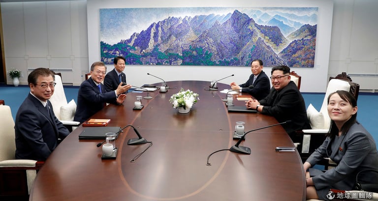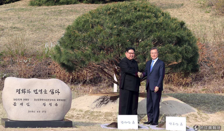 本月 27號,北韓領導人金正恩在媒體高度關注下跨過了北緯 38度線,成為第一個踏入南韓領土的北韓領導人,當時迎接他的南韓總統文在寅在握手後說:「希望我有一天也可以拜訪北韓。」金正恩則回應:「何不現在呢?」於是兩人手牽著手一同進入北韓、再走回南韓,明確地替這次的高峰會確立了一個雙邊和解的意向。