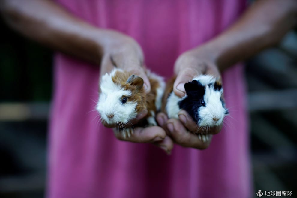 在聖多明哥,一名農夫向攝影師展示了剛出生的小小天竺鼠。