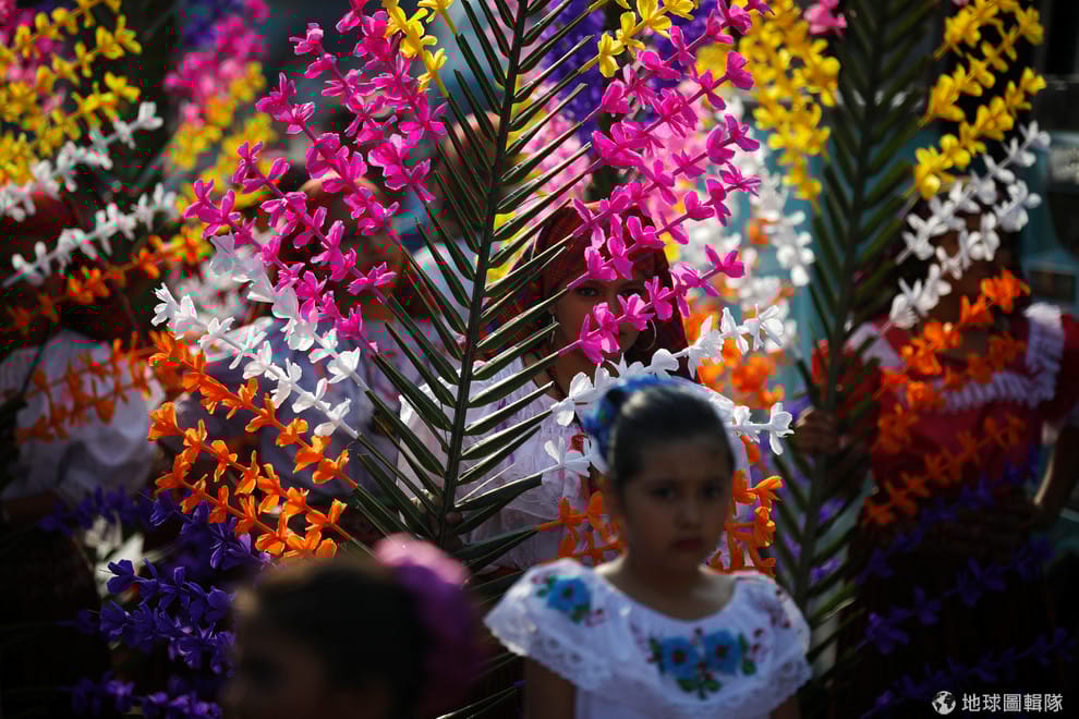 一名女孩身穿傳統服飾參與了聖十字遊行,祈禱接下來的雨季能夠順利來臨。