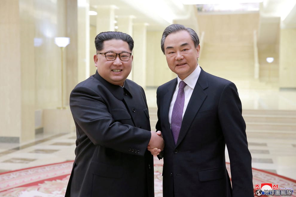 在這張由《朝鮮中央通訊社》(KCNA)公布、日期不明的照片中,記錄下北韓領導人金正恩與中國外交部長王毅互動的照片。