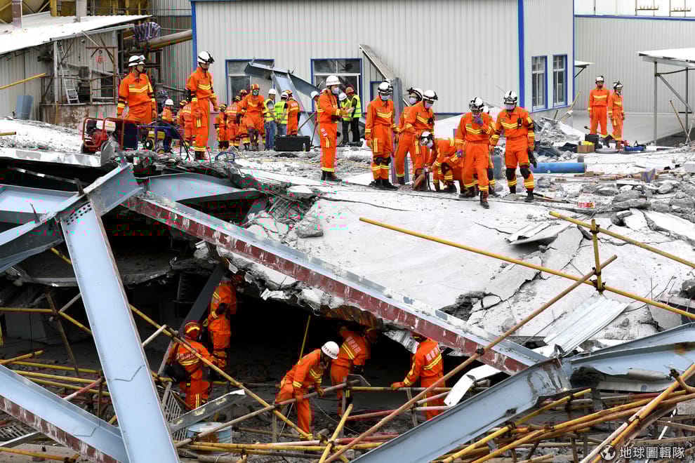 在福建省莆田市,救難人員在坍方的水泥廠房中尋找生還者,這起事故造成 5人死亡、13人受傷。