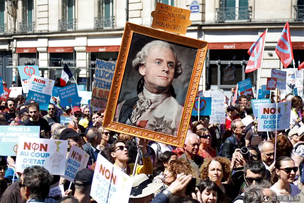 本月 5號,面對法國總統馬克宏(Emmanuel Macron)執政即將屆滿一年,法國極左派政黨不屈法國(France Insoumise)舉辦了一場反馬克宏的示威遊行。
