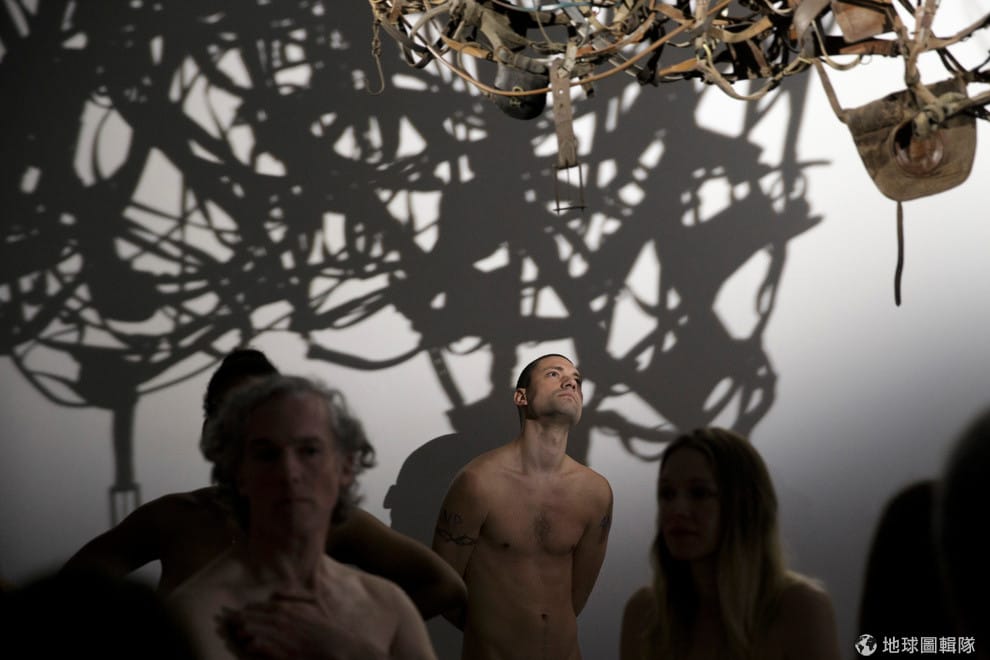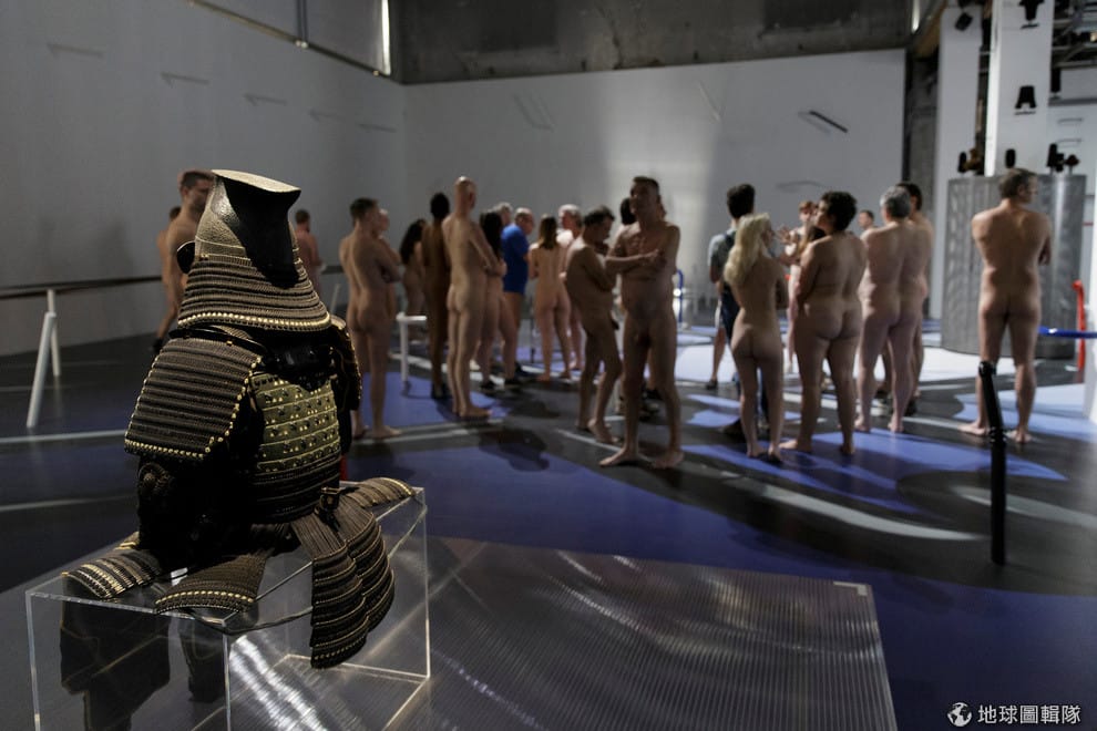 在衣帽間脫到一絲不掛後,這 160名參觀民眾開始進入展館,浸淫在濃厚的藝術氛圍中,他們光溜溜地到處走動,享受這難得的看展體驗。