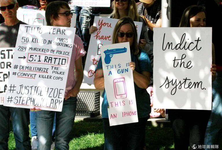 工具也有「槍枝」的意思,因此有部分的人指出,這句歌詞暗指今年 4月中在美國加州沙加緬度(Sacramento)發生的事件,當時 22歲的克拉克(Stephon Clark)拿著手機在自家後院移動,卻被警方誤以為他拿著「工具」而將之擊斃;與此同時,這句歌詞也可以解讀成手機作為一種紀錄(警察暴力的)工具。