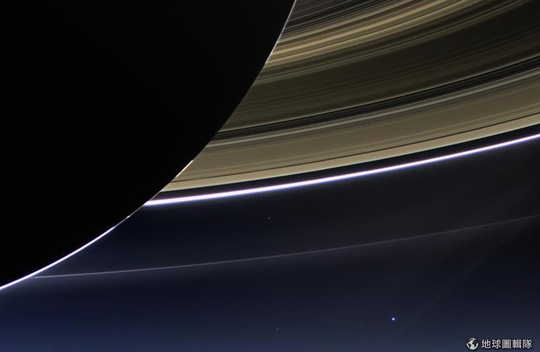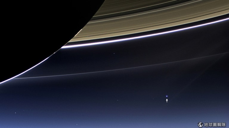 美國太空總署 NASA釋出從土星看地球的照片,卡西尼飛船(Cassini)從距離地球 14.4億多公里處拍攝。畫面上的地球看起來就像是個小小的藍色光點,一旁還可以看到另一個更小的光點,也就是大家都很熟悉的月球。