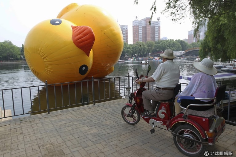 迎接這隻已在世界各處落腳過的大黃鴨前,先來看看中國當地的「複製版」黃鴨吧!在上海、遼寧、天津等地,就因為火紅的「瘋鴨熱潮」勢不可擋,當地人乾脆自己做起的大黃塑膠鴨,讓民眾自己也能同樂一番。