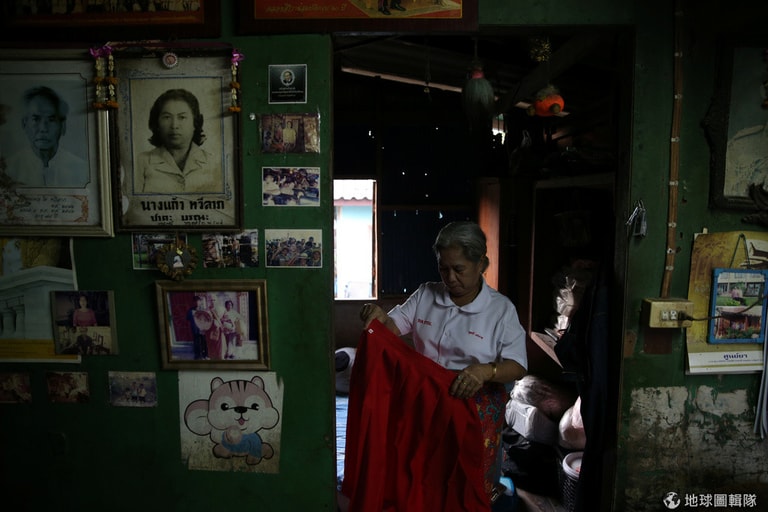 今年 63歲的Poonsri Seangnual一邊打理她的制服一邊說道:「我真的很喜歡去學校上學。這不僅有趣,也讓我學到新的知識。」