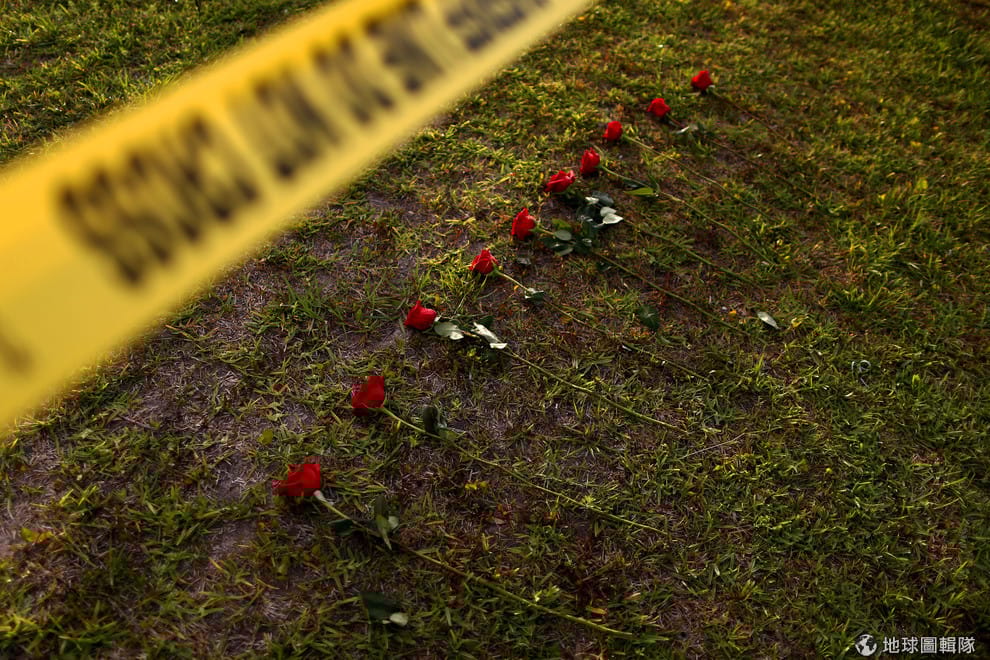 在德州聖塔菲高中(Santa Fe High School),10枝玫瑰花擺在警戒線下的地上,悼念在槍案中身亡的十條生命。18號時,現年 17歲的嫌犯帕戈西茨(Dimitrios Pagourtzis)持搶闖入校園攻擊師生,造成 10人死亡、13人受傷。