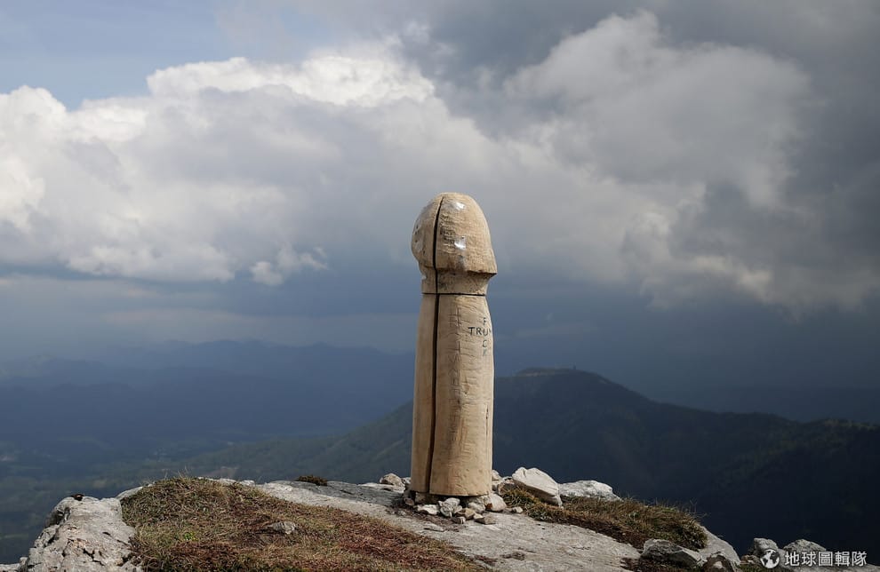 在厄徹山(Ötscher)上,矗立著一根由不知名藝術家創作的木陰莖。