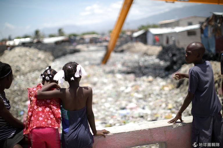 在首都太子港的貧民窟太陽城(Cite Soleil)中,怪手正想辦法把河中堆積如山的垃圾給清運出去,希望能還給當地一條乾淨的河流。