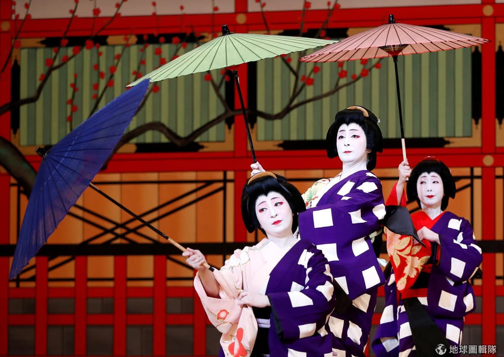 在東京新橋演舞場,藝妓們在台上跳出日本舞蹈的優雅和醉人。