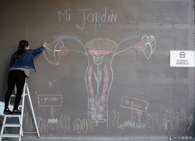在首都聖地亞哥安德烈斯貝洛國立大學(Andres Bello National University),一名學生在佔領大學運動中,用一幅名為〈我的花園〉的女性生殖器壁畫,抗議性別歧視和性別暴力。