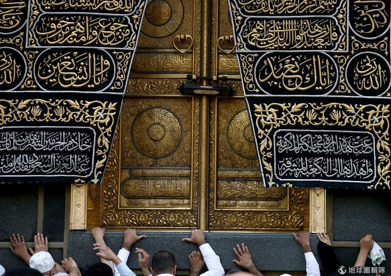 時值穆斯林齋戒月,信徒們來到聖城麥加(Mecca)的大清真寺摸「卡巴天房」(Kaaba)祈願,相傳「卡巴天房」是天堂的建築「天使崇拜真主之處」在地上的翻版,而「卡巴天房」的位置就直接在天堂建築之下。