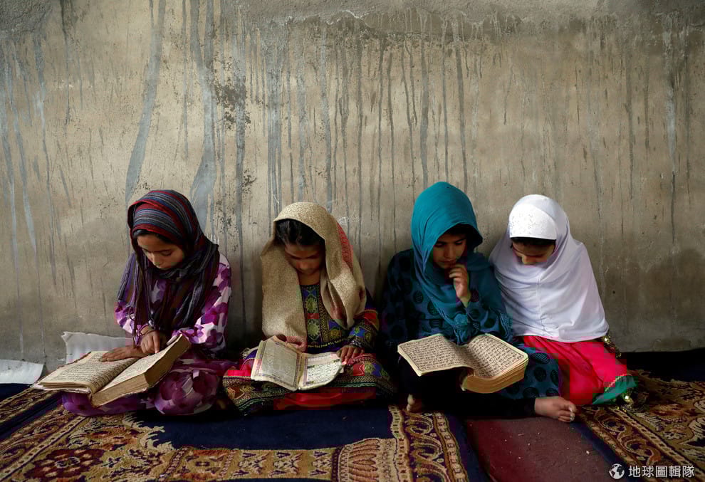 在一所宗教學校裡,幾名女孩以閱讀《可蘭經》度過「齋戒月」(Ramaḍān)中白天必須禁食(fast)的時光。