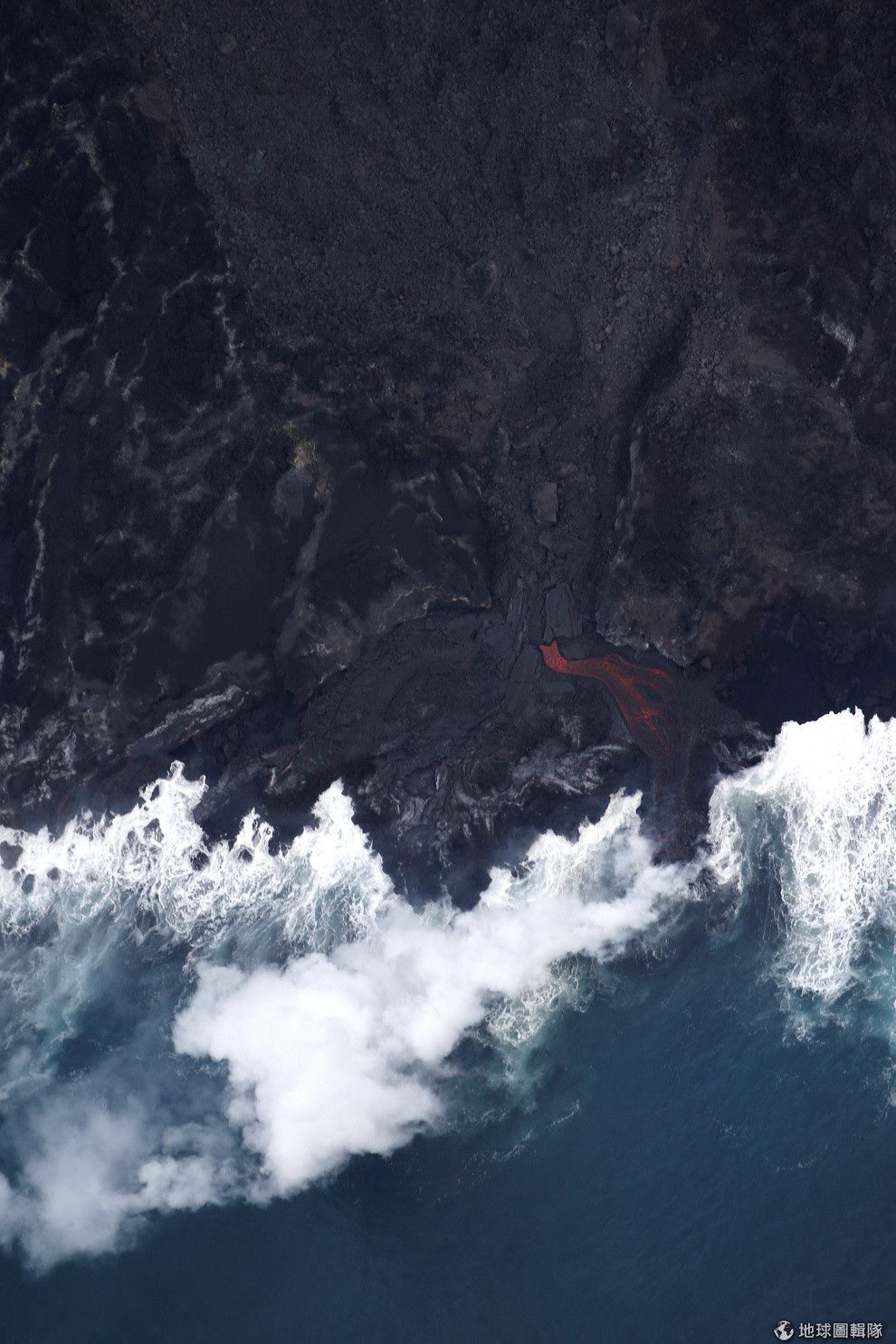 這張俯瞰圖中,拍下了奇勞亞火山(Kilauea volcano)噴發後,越過 137號高速公路沒入太平洋的情況。