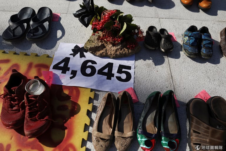 在波多黎各首都聖胡安(San Juan),哈佛大學所領導的研究團隊在的國會大廈外擺上 4,645雙鞋子,象徵因為颶風瑪麗亞(Hurricane Maria)肆虐而罹難的人們。不過這個數字並沒有獲得波多黎各政府證實。