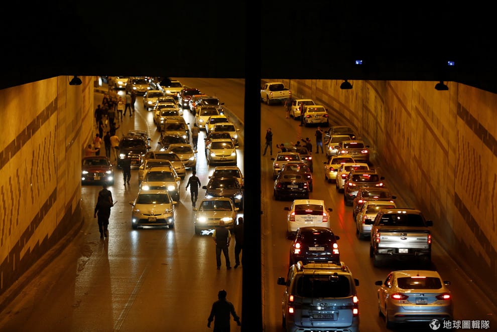 示威人士在總理辦公室前進行抗議,並試圖說服經過的司機停下車子。這幾天,數千名約旦民眾不滿政府因為撙節政策大幅加稅,因此上街抗議。
