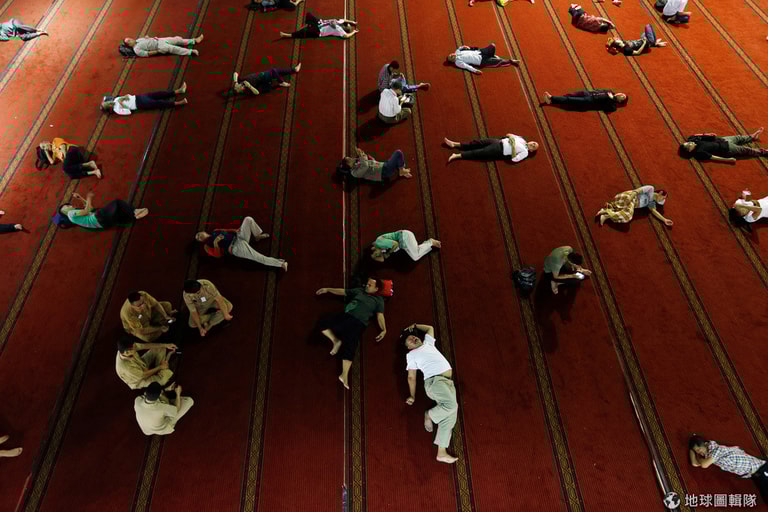 時逢「齋戒月」(Ramadan),人們躺在路上睡覺打發時間,以此等待著開齋飯(iftar)的時間來臨。