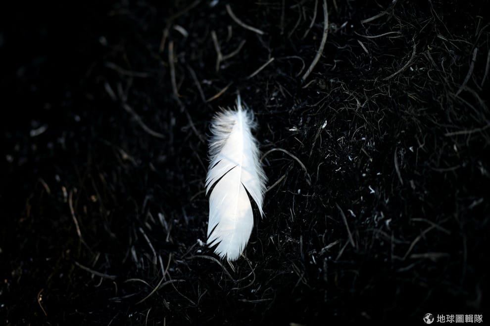 在加薩走廊與以色列的邊境,不滿的巴勒斯坦人透過裝滿可燃物質的風箏、氣球在這一帶引燃大火,在火勢過後,一根羽毛遺落在焦黑的土地上。