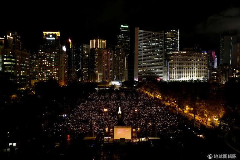 數以千計的香港人手持燭光聚集在香港維多利亞公園,悼念六四天安門事件距今已有 29年。