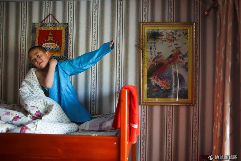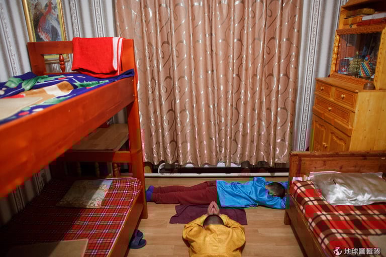 每天早上 7點左右,今年 29歲的僧侶泰安(Lobsang Tayang)就會起身去叫醒 10歲的圖爾(Batkhan Tuul)的和11歲的塔穆勒(Temuulen),測驗他們對經文的熟稔程度,並在剩餘的早上朗讀經文。
