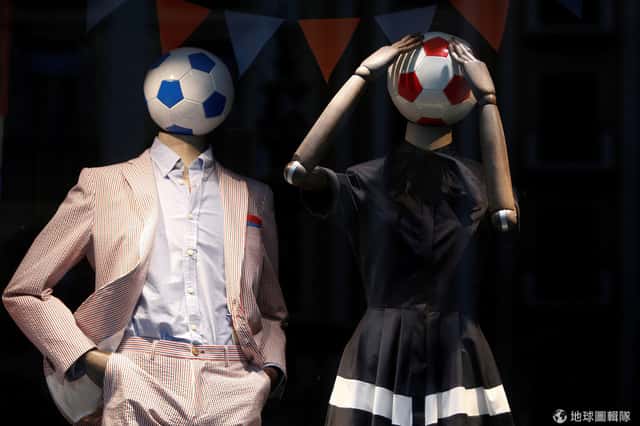 在南部大城馬拉加(Malaga),為了配合即將到來的 2018年世界杯足球賽(2018 FIFA World Cup),一家服飾店特別替模特兒做出了不一樣的設計。