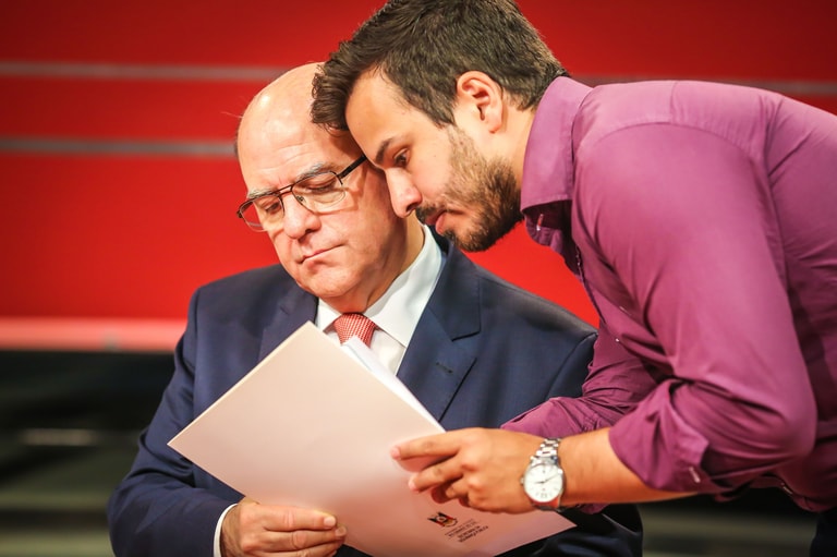 這支影片為第一回合Project Debater(左)對上歐瓦迪雅(右)的辯論賽。從影片中可以看到歐瓦迪雅在質詢的時候很認真地聽著Project Debater的論點邊作筆記。