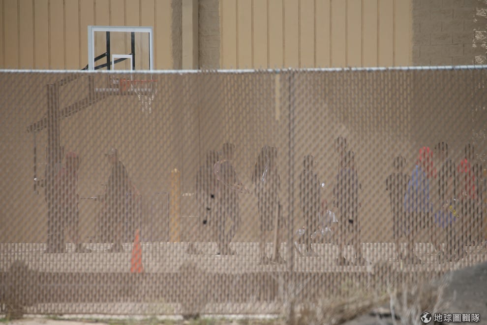 在德州與墨西哥毗鄰的布朗斯維爾市(Brownsville),沒有父母陪伴的移民孩童在收容機構中打球。