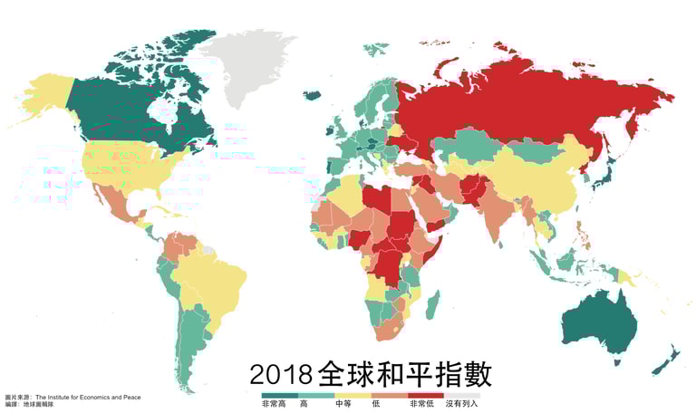 今年 6月初,經濟與和平研究所(Institute for Economics and Peace)公布了 2018年全球和平指數(Global Peace Index, GPI)調查報告,這是經濟與和平研究所第 12次針對全球 163個國家進行調查。