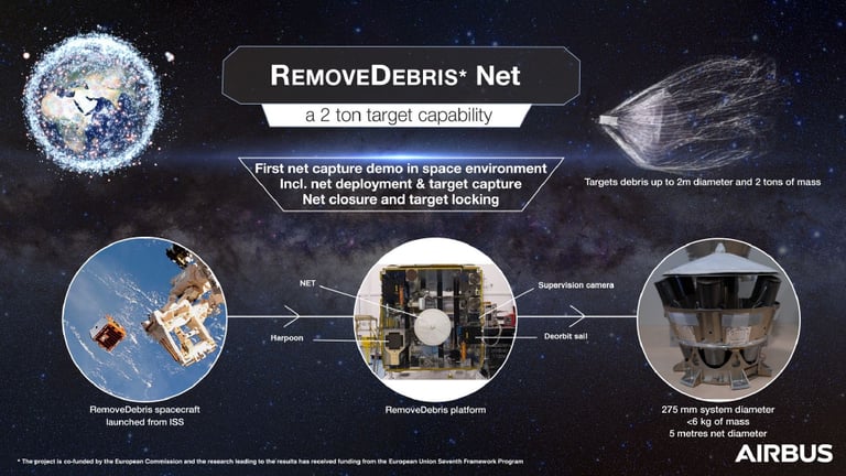 有參與計畫的空中巴士太空系統(Airbus Space Systems)負責人喬姆西(Nicolas Chamussy)表示:「我們花了許多年在研發創新的清除碎片系統,在最前線處理日益嚴重的太空垃圾問題,好為了下一代對聯合國永續發展目標有所貢獻。」