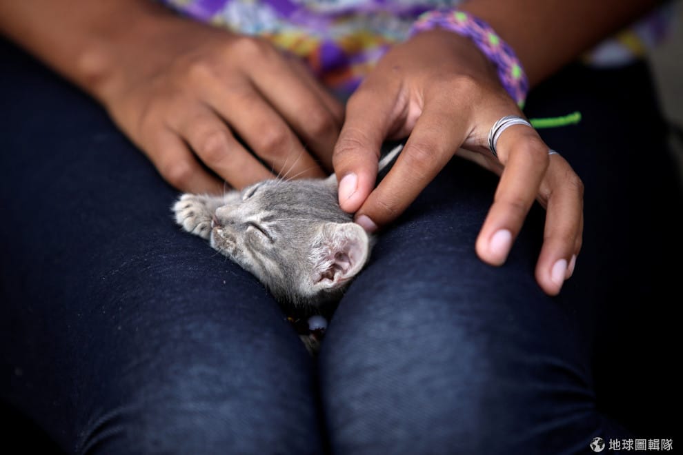 在位於墨西哥塔毛利帕斯州(Tamaulipas)的移民收容所內,一名來自宏都拉斯的青年正在逗弄自己的寵物貓。