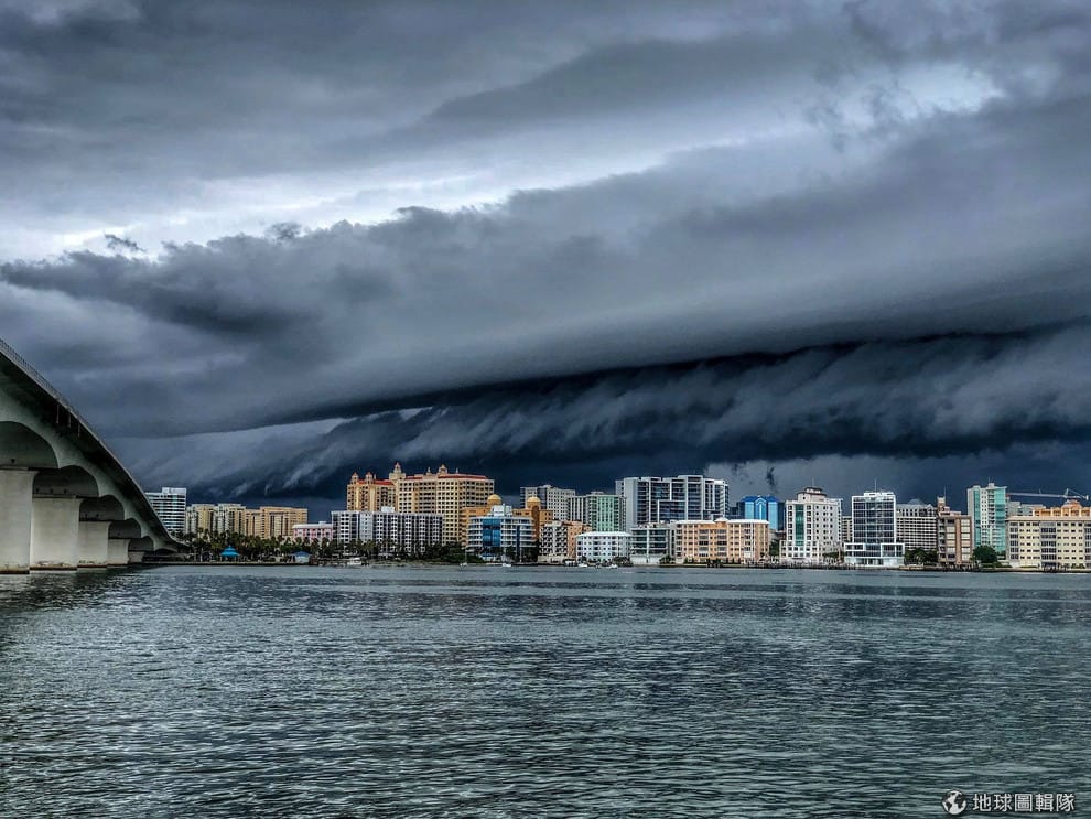 在美國佛羅里達州臨海城市薩拉索塔(Sarasota),厚厚的暴風雲壟罩在城市上空。