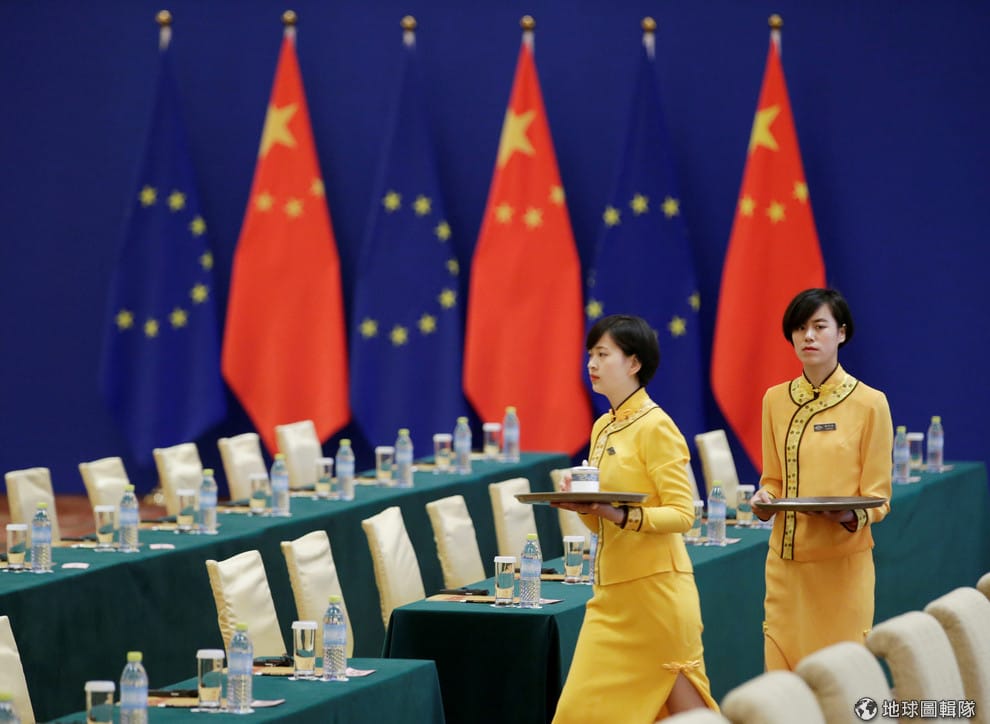 在北京釣魚台國賓館,服務員正在替即將到來的歐盟—中國高層級會談作準備。