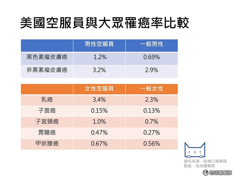 空服員罹癌率較高