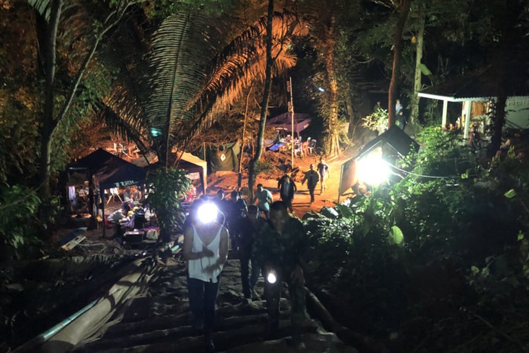 最後,負責搜救的泰國海豹部隊採用的方法是:在狹窄地段由兩名潛水夫負責一位少年,在前方開路的潛水夫和少年之間用繩索綁住,並攜帶著少年專用的氧氣筒,而後方的潛水夫則負責用手電筒開路。