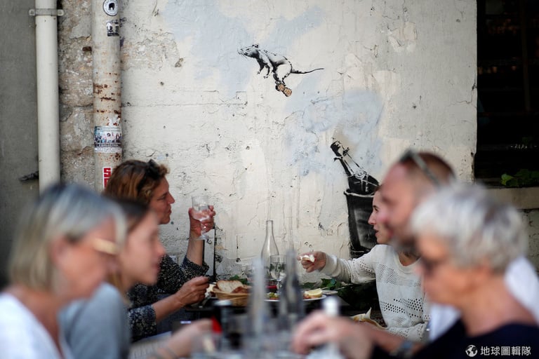 不過也有一些「老鼠繪」是由人們自由解讀的,像是同時出現在兩個地方、都是老鼠站在香檳塞子飛出去的塗鴉,有人認為是在談論貪婪,也有人認為是在談論這一帶富含的慶典精神。