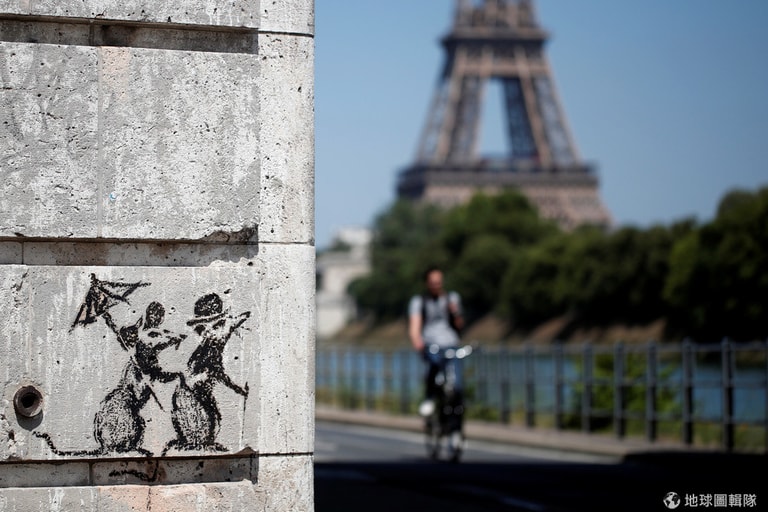 對照著這對老鼠夫婦所看過去的方向,正好是巴黎的著名地標艾菲爾鐵塔(Eiffel Tower)。
