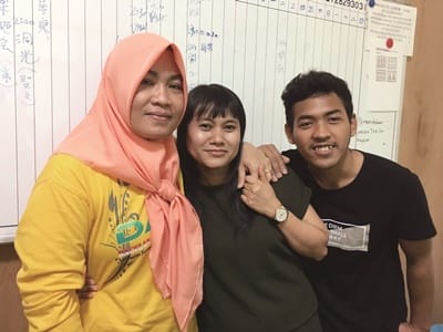 來自印尼的移工如爾(左起)、馬露芙納和亞邁德都表示,雖然有遇到不好的經驗,但還是有很多台灣人很友善,讓他們願意繼續留在台灣工作。(中央社余曉涵)