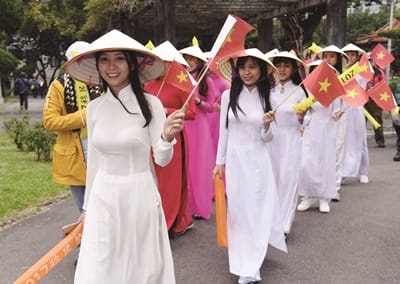 台灣人歧視婚姻移民的消息仍時有所聞。圖為越南新住民參加國際移民日踩街活動。(中央社施宗暉)