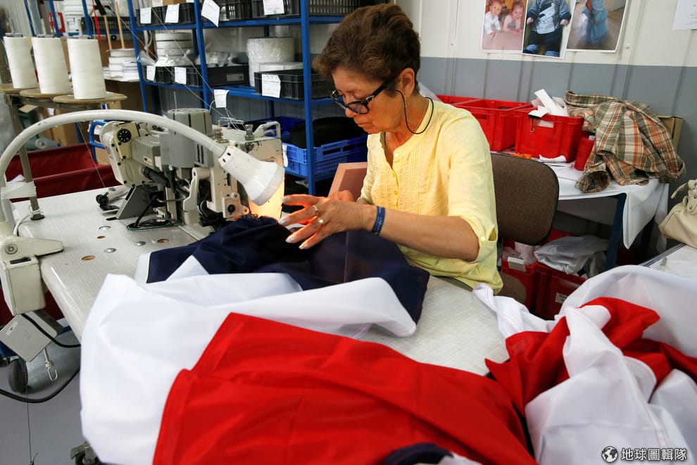 在法國北部瓦夫蘭(Wavrin)的一間國旗工廠內,工作人員正加緊趕製一面面國旗,好在 15號登場的FIFA世足冠軍賽上,讓法國球迷能夠拿著和克羅埃西亞球迷較勁。