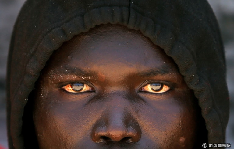 14號這天,在地中海搭乘救援船的移民順利從位於南部的塔里法港(Tarifa)上岸, 一名移民的眼睛映照出海岸的樣子。