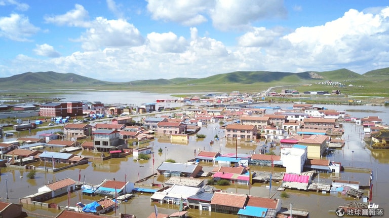 在四川省若爾蓋縣,大雨造成的洪患將整個村落淹沒,當局也緊急撤離當地民眾,避免造成進一步的災情。