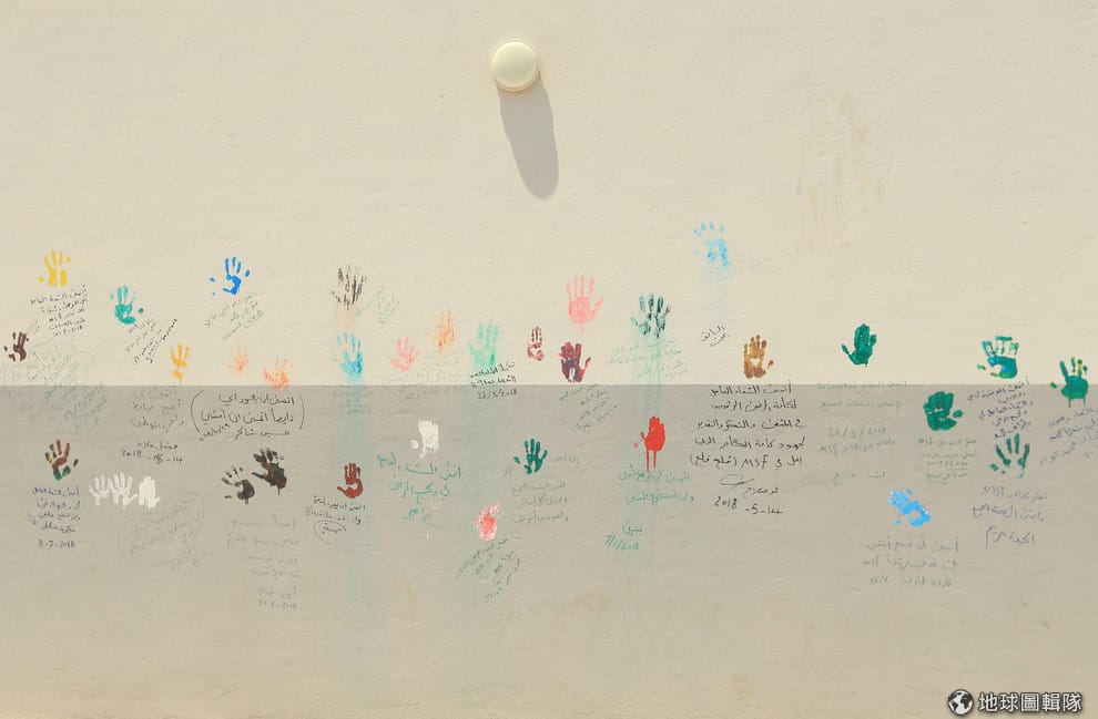 在一年前被當局從伊斯蘭國(IS)手中收復的摩蘇爾城(Mosul),民眾在「無國界醫生」組織(Medecins Sans Frontieres)經營的醫院牆上印上手印、寫下感謝的話語,開心出院迎接新人生。
