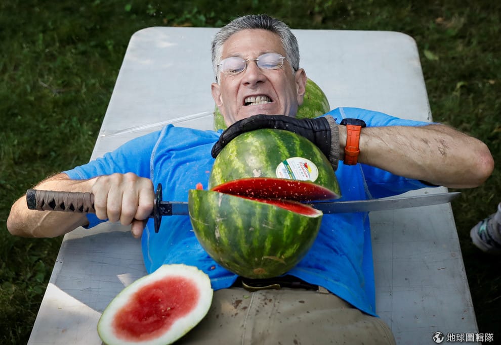 在紐約市,獲得最多金氏世界紀錄(Guinness World Records)的保持人福曼(Ashrita Furman),這次又出新招,他要挑戰一分鐘內在腹部上切最多顆西瓜的紀錄。最後,他靠著切 26顆西瓜成功破紀錄。