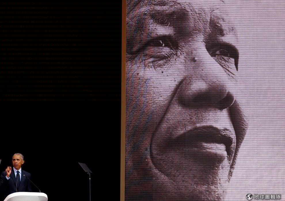 在約翰尼斯堡,美國前總統歐巴馬(Barack Obama)在紀念南非前總統曼德拉(Nelson Mandela)百歲冥誕的活動上演講。