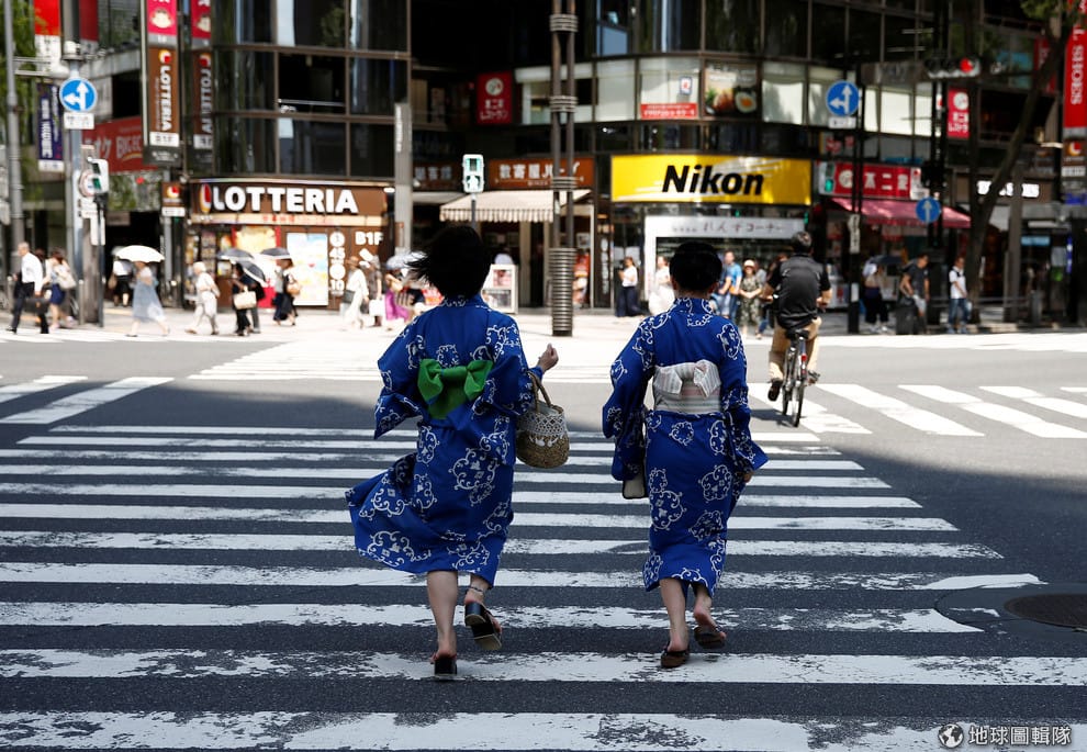 在東京街頭,穿著浴衣的女孩過馬路的身影被鏡頭捕捉了下來。
