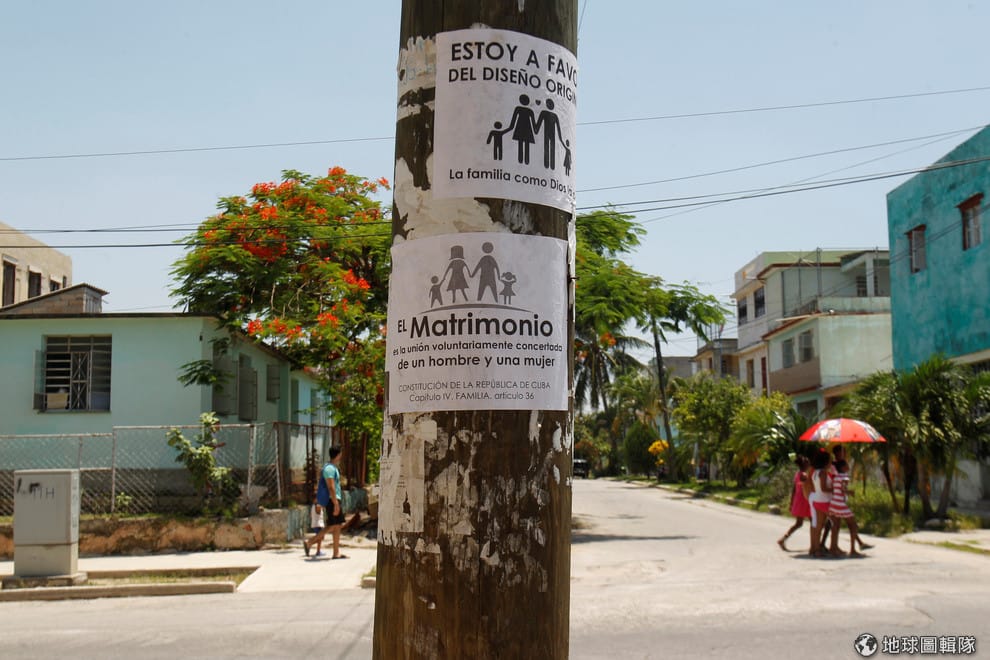 在古巴首都哈瓦那(Havana),畫面中的反同婚標語分別寫到:「上帝所創造的家庭,就是我喜歡的原本樣貌」、「婚姻就是一男一女自願安排的結合」。